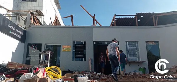 Na área urbana o montante calculado em perdas pelo temporal é ainda maior. Conforme o setor de defesa civil, 400 pessoas foram diretamente afetadas pelo vendaval totalizando um prejuízo de R$5mi em construções particulares e outros R$50mil em locais públicos.