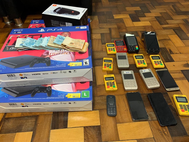 No local, foram apreendidos cartões de vítimas dos furtos, notas fiscais e objetos comprados com dinheiro das vítimas, mais de R$ 10 mil em especie, além de outros documentos e objetos. Uma motocicleta utilizada nos furtos, também foi apreendida.