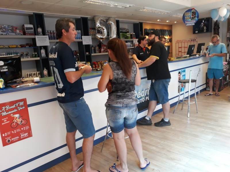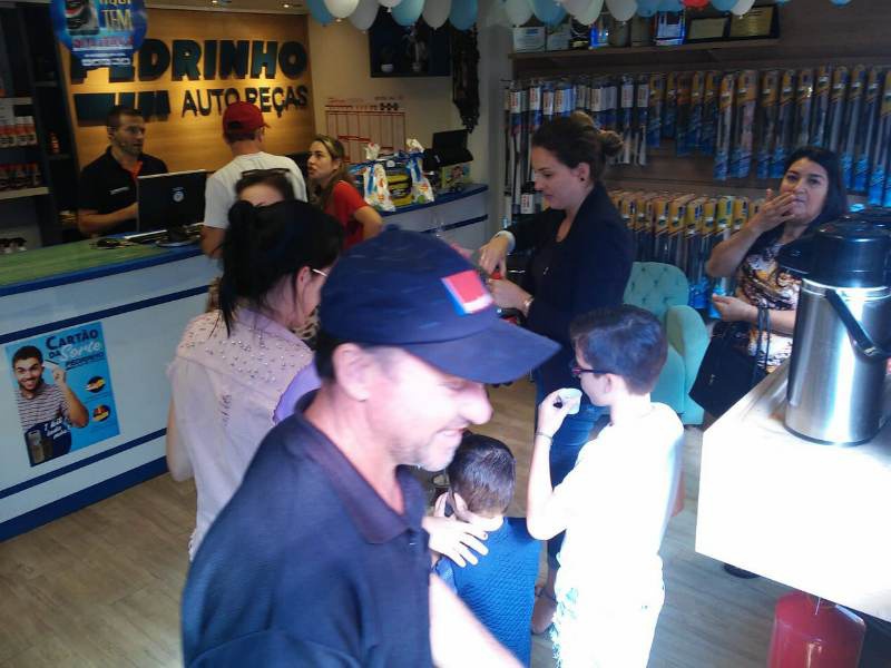 Com a venda de peças para automóveis, camionetes, caminhões e carretas a Pedrinho Auto Peças conquistou a confiança e a credibilidade de milhares de clientes na região do Médio Alto Uruguai. Por isso na manhã deste sábado, 30, brindou seu público especial com uma programação na loja matriz. A cada compra efetuada o cliente estourava um balão e ganhava uma porcentagem de desconto no valor da compra. Além disso foi servido bolo e outros comes e sorteado brindes.