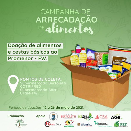 O Pet do curso de Engenharia Florestal da UFSM-FW está arrecadando alimentos para serem doados ao Promenor.