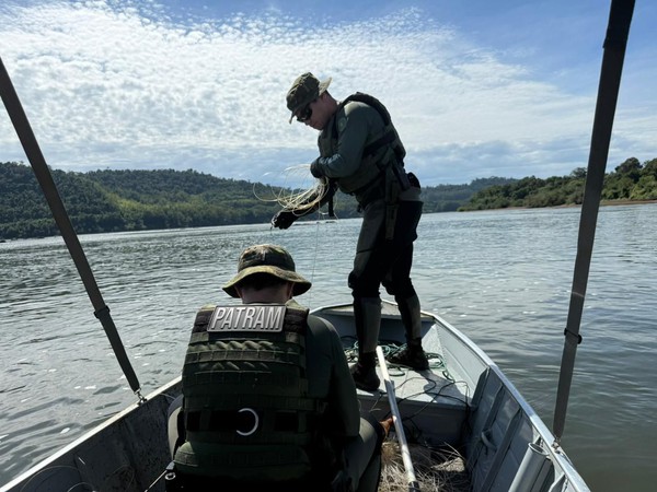 A ação foi realizada por equipe que atuava a bordo de embarcação motorizada, em operação preventiva de fiscalização ambiental. Durante a navegação, os policiais localizaram e retiraram das águas 130 metros de redes de pesca, 400 metros de espinhéis e 17 boias-loucas, petrechos inseridos de forma irregular no ambiente aquático.