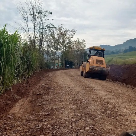 Máquinas estão trabalhando no alargamento das vias com drenagem, limpeza das margens e cascalhamento