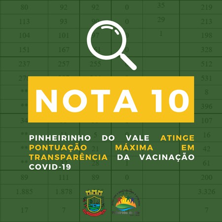 De acordo com a avaliação feita pelo Tribunal de Contas do Estado do Rio Grande do Sul (TCE-RS), Pinheirinho do Vale obteve nota máxima na transparência do processo de vacinação contra a Covid-19. A análise considerou os critérios de cumprimento da legislação que determina aos municípios a disponibilização das informações atualizadas sobre o Plano Nacional de Operacionalização da Vacinação contra a Covid-19 e sua execução de forma padronizada e clara, em página oficial na internet.