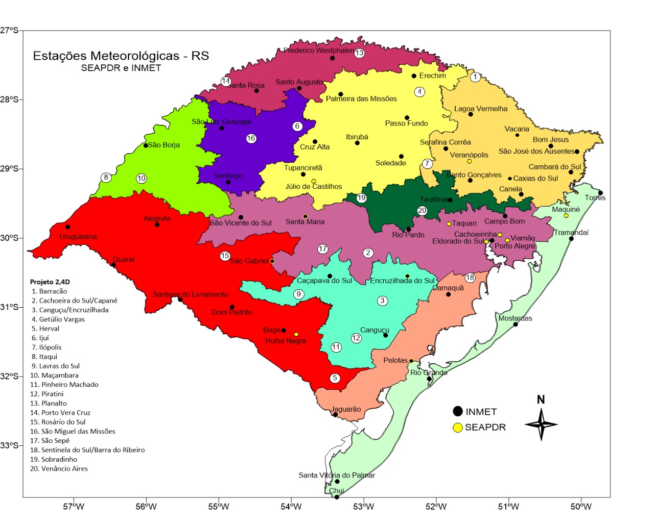 Entre as principais culturas sensíveis ao 2.4-D estão a macieira, videira, oliveira, nogueira-pecã, erva-mate, tomate e hortaliças, que também foram consideradas para a implantação das estações. Conforme dados da Secretaria da Agricultura, nesta safra, das 171 amostras coletadas em 54 municípios para detecção do 2.4-D, 87,13% deram resultado positivo. No ano passado, o índice foi de 85,2%, mas em uma amostra menor, de 81 análises.