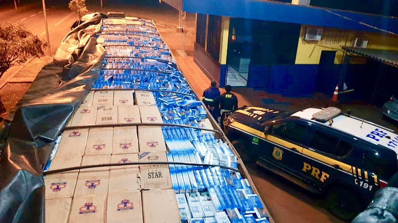 A carreta Scania T112, com placas de Marmeleiro/PR, era conduzida por um homem de 28 anos. Ao verificar a carga, os agentes constataram que o veículo estava completamente carregado com cigarros contrabandeados do Paraguai.