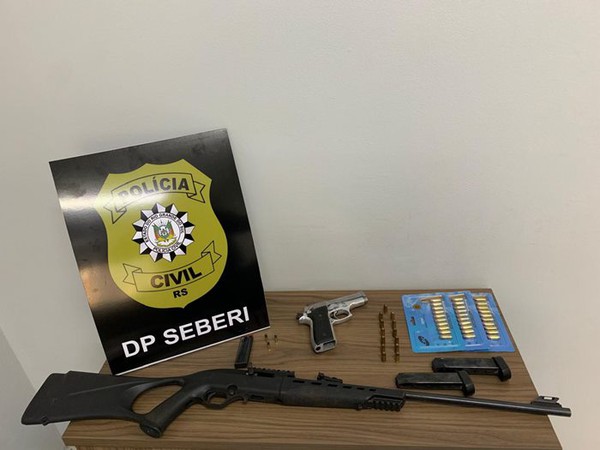 Durante as diligências, realizadas em imóveis da cidade de Seberi, os agentes apreenderam um rifle calibre .22, uma pistola calibre .380, carregadores e 46 munições. As ações integram uma estratégia coordenada voltada à proteção de vítimas de violência doméstica e à retirada de armamentos ilegais de circulação.