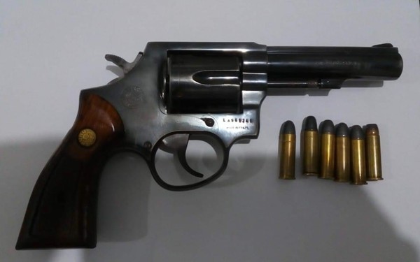 No local, foi encontrado uma arma de fogo, revólver marca Taurus Calibre .38 e seis cartuchos calibre 38, que foram apreendidos juntamente com um veículo.