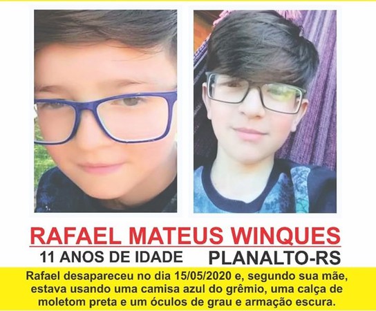 - Até o presente momento, a tese principal é de desaparecimento do Mateus Rafael Winques, isso porque ele dormiu em casa. A casa não possui sinais de arrombamento e a porta foi aberta por dentro. A tese do sequestro, nesse momento, encontra-se enfraquecida, já que não houve exigência de resgate e a família é humilde-, disse a polícia.