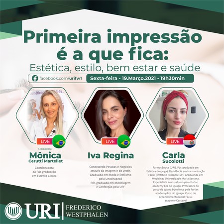 O encontro será transmitido pelo Facebook da URI/FW, a partir das 19h30, e terá como tema “Primeira impressão é a que fica: estética, estilo, bem-estar e saúde”.
