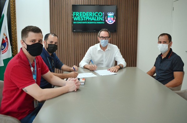 Além de Panosso e Kreitmeier, participaram da reunião de assinatura do Termo, o gerente da unidade do Sesc de Frederico Westphalen, Adriano do Couto Pereira, e o técnico em Esporte e Lazer do Sesc, João Pedro Manica.
