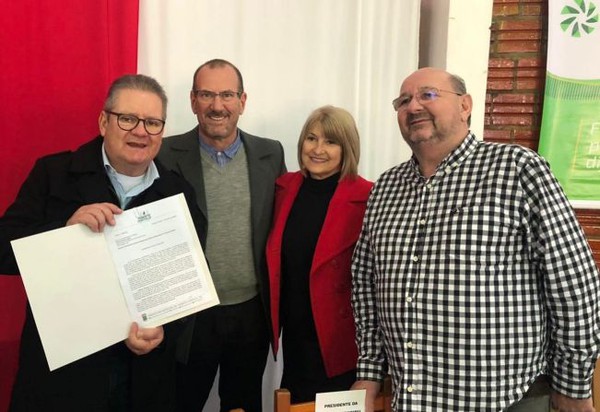 Na foto, o governador Ranolfo com Rosemar e Salete Sala e o deputado estadual Aloísio Classmann.