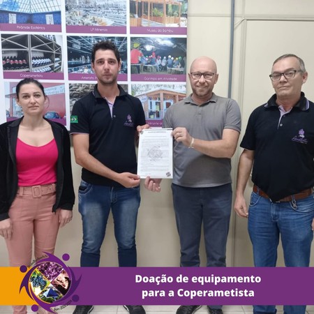 No gabinete do prefeito de Ametista do Sul, Jadir Kovaleski, ocorreu a assinatura do documento que oficializa a doação de equipamento para a Coperametista. O ato contou com a presença do prefeito, da secretária da Fazenda, Verenice Santin Bonai, e representando a cooperativa, o presidente da entidade, Irineu Oroski, e o enólogo, Nivaldo Potrich.