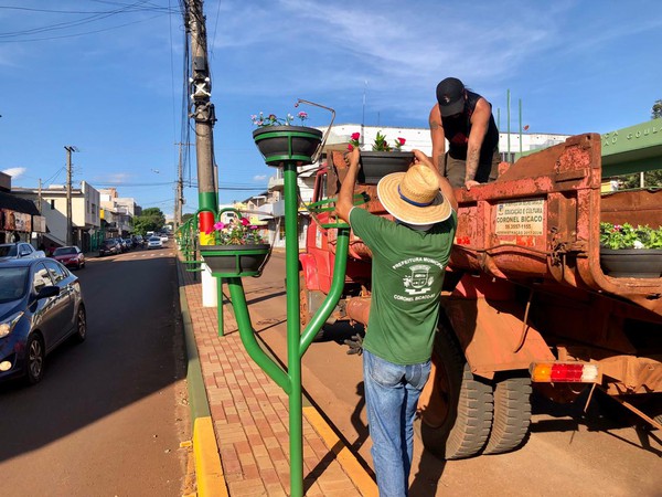 Prefeitura de Coronel Bicaco inicia substituição das flores nos canteiros centrais da cidade