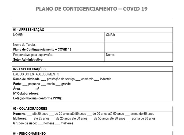 Na manhã desta segunda-feira, 30, a administração disponibilizou um modelo que poderá ser utilizado pelos empresários de fácil preenchimento e também já indicando as medidas a serem tomadas sem que o empresário precise recorrer aos decretos municipais. Basta acessar o link (abaixo) baixar o anexo e preencher para depois encaminhar à adminitração municipal.