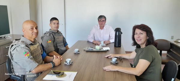 Participaram da reunião o vice-prefeito, Régis Lorenzoni, a secretária de Educação, Maria Andréia Nerling e representando a Brigada Militar os capitães Winter e Viganó.