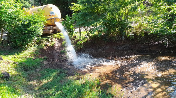 Mais de 40 propriedades já são atendidas pela prefeitura, que, diariamente, destina caminhões pipa para o transporte de água para o consumo humano das famílias afetadas e para a dessedentação animal, na suinocultura, bovinocultura e avicultura.