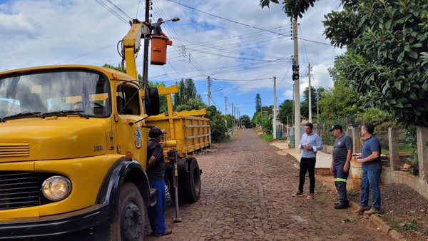 A equipe da secretaria de obras de Seberi está desenvolvendo o processo de troca das lâmpadas queimadas nas vias públicas da cidade. O Prefeito Adilson Balestrin, tem acompanhado, sempre que possível, o departamento responsável pela substituição. Foi o que aconteceu na tarde desta terça-feira, 8 de março. O Presidente do Legislativo, Luis Carlos Fortes, esteve também estava presente.