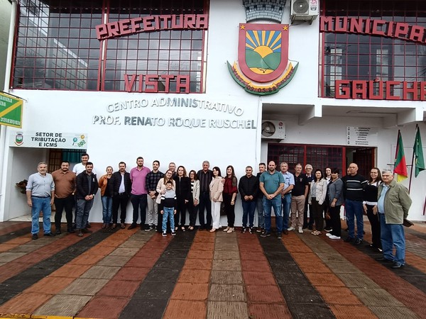 Autoridades, familiares e moradores de Vista Gaúcha participaram da cerimônia que oficializou o novo nome do prédio da prefeitura o Centro Administrativo Professor Renato Roque Ruschel, que ocorreu na última segunda-feira, 6 de outubro, em frente à sede do poder executivo.