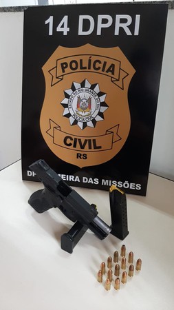 As diligências, realizadas no município de Palmeira das Missões, resultaram na prisão do suspeito e na apreensão de uma pistola calibre 9 mm, além de 14 munições do mesmo calibre. A arma apreendida será submetida à perícia, por haver indícios de que tenha sido utilizada na prática do crime.