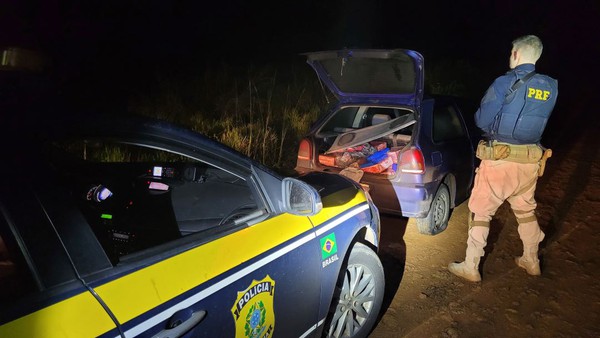 Ao chegarem ao local os PRFs encontraram um Gol, com placas de São Miguel do Iguaçu-PR, com dois pneus vazios e cerca de 152 quilos de maconha no porta-malas.