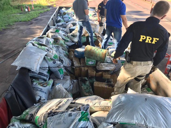 A Polícia Rodoviária Federal apreendeu grande quantidade de maconha escondida em uma carga de adubo na BR 386, em Sarandi. Um traficante foi preso durante a ação, que ocorreu na tarde deste sábado, 30.