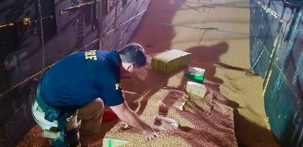 Os policiais verificaram a carga e constataram que a carreta estava carregada com soja a granel, porém abaixo dos grãos foram localizados diversos fardos de maconha, que totalizaram 455 quilos.
