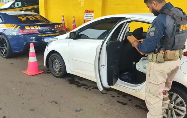 Droga estava escondida em sacos de cereais dentro de um automóvel com placas do Paraná