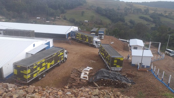 O primeiro aviário implantado em Pinhal, nas margens da RS 323 concluiu o seu primeiro ciclo de produção com aproximadamente 80 mil, realizando o primeiro carregamento de aves enviadas ao frigorifico da JBS, ainda no início deste mês.