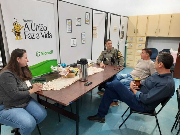 Na última terça-feira, 5 de abril, estiveram reunidos nas dependências da Secretaria Municipal de Educação e Cultura (SMEC), o secretário municipal de Educação e Cultura, Airton José Fabris, o vice-prefeito, Dirceu Antônio Stefanello, a supervisora escolar, professora Carina Luisa Kurek Tibola, junto ao instrutor do PROERD, o soldado da Brigada Militar de Caiçara, Cristiano Teis Tibola.