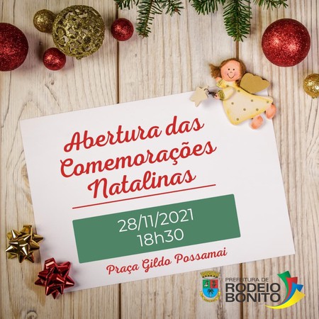 A abertura das comemorações de Natal 2021 começa neste domingo, 28 de novembro, em Rodeio Bonito, na Praça Gildo Possamai.