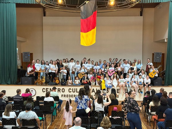 No último domingo, 21 de dezembro, a programação do Frederico em Luz já foi transferida para a sede do Centro Cutural 25 de Julho, o evento reuniu um público animado que prestigiou lindas apresentações — entre elas, os talentosos alunos da Musikantiga – Alfabetização Musical, que subiram ao palco com o espetáculo “Harmonia de Natal”.