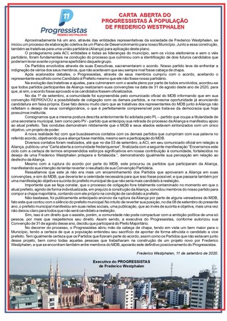 CARTA ABERTA DO PROGRESSISTAS À POPULAÇÃO DE FREDERICO WESTPHALEN