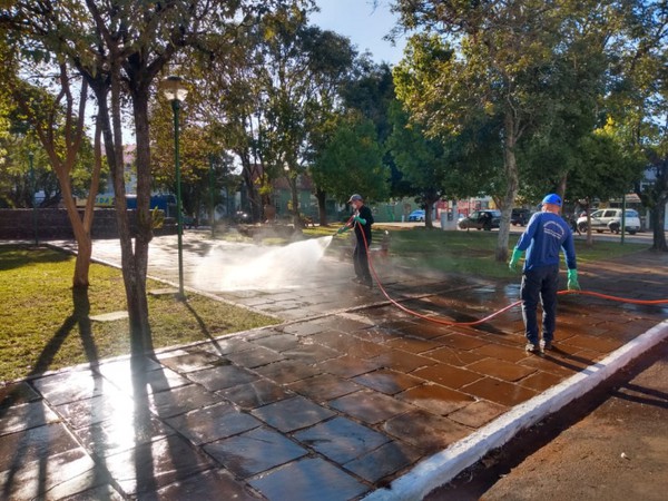 A Administração de Tenente Portela realizou nesta segunda-feira, 13 de abril, mais uma higienização sanitária nas principais avenidas e ruas e em locais com maior circulação de pessoas. Os trabalhos iniciaram às 5 horas nas proximidades do Hospital Santo Antônio (HSA) e seguiram pelas instituições bancárias e outros prédios públicos.