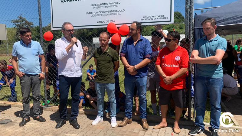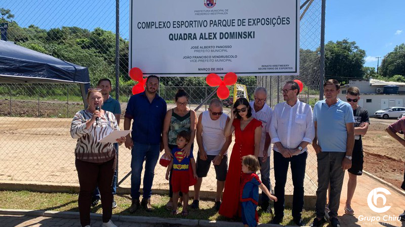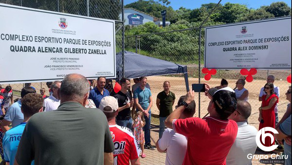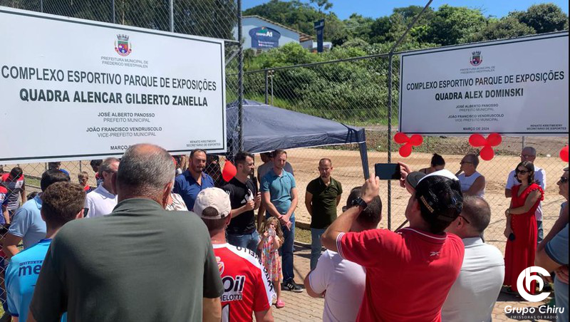 Duas quadras, uma com grama e outra com areia, destinadas a diversas modalidades esportivas foram inauguradas neste sábado, 2 de março, no Parque de Exposições Monsenhor Vitor Batistella, em Frederico Westphalen, os espaços levam o nome de dois atletas frederiquenses, que acabaram partindo, mas deixaram o legado de amor pela pratica esportiva - Alex Dominski e Alencar Zanella.