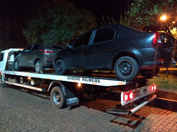 No veículo Renault/Logan foi localizado uma pistola marca Taurus calibre 38, carregada com dez munições e um revólver calibre 38 marca Taurus com numeração raspada, carregado com três munições. O veículo de cor preta placa clonada foi roubado em Porto Alegre no Bairro Humaitá, no dia 27 de julho deste ano.