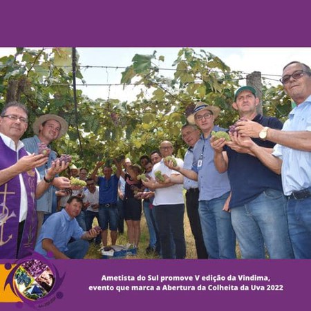 Ametista do Sul realizou nesta quinta-feira, 8 de dezembro, a V edição da Vindima, evento que marca a Abertura Oficial da Colheita da Uva 2022. A ação ocorreu na comunidade de Linha Alta, na propriedade dos produtores Edemar e Adriana Mezzaroba.