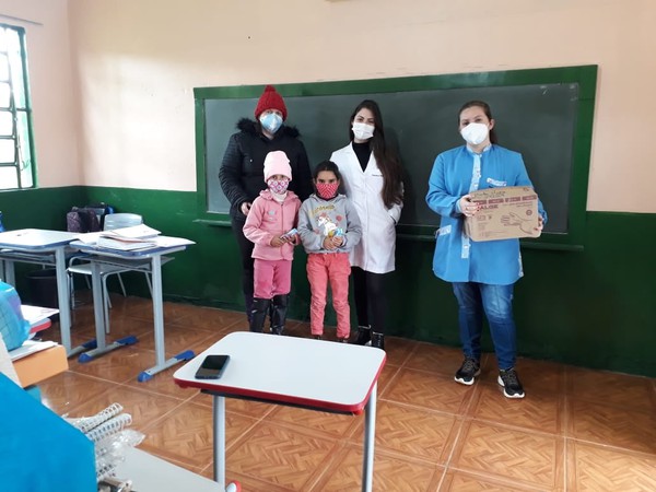 A Escola Municipal de Educação Infantil Gente Miúda recebeu 144 escovas de dentes e a Escola Municipal São José ganhou 75 escovas de dentes e 15 unidades de fio dental. Já a Escola Municipal Maria Belmont Albert recebeu 245 escovas de dentes e 154 unidades de fio dental.