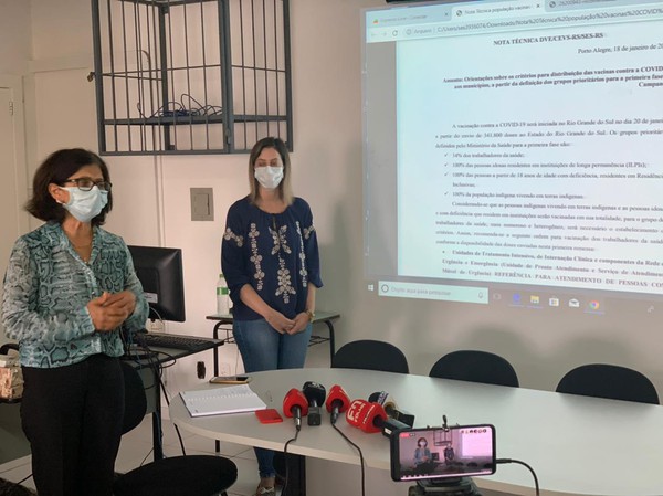 Coordenadora regional e coordenadora do setor de imunobiologicos da CRS participaram de coletiva com a imprensa