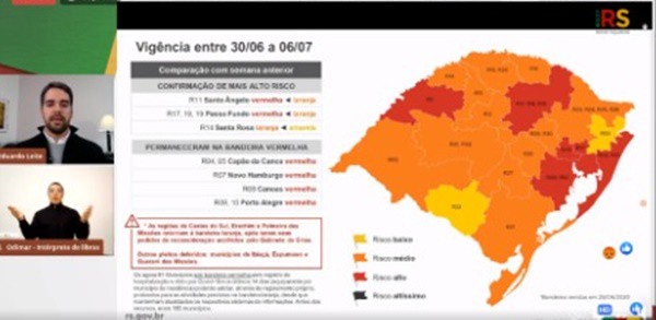 Sobre Palmeira das Missões, o governador salientou que pela segunda semana seguida, no arredondamento dos dados a região vai para a bandeira vermelha e mesmo sendo reavaliado individualmente, os dados e sendo considerado que pode retornar a laranja é preciso atenção da comunidade. “É um alerta, porque se formos analisar os números eles estão evoluindo e o que realmente nos preocupa enquanto Estado é a macro-norte, Erechim e Palmeira das Missões voltaram a laranja mas, Passo Fundo e Santo Angelo seguem na bandeira vermelha com evolução nos casos diariamente”, disse Eduardo Leite.