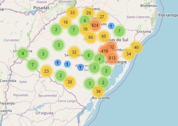 Casos confirmados na região do RS