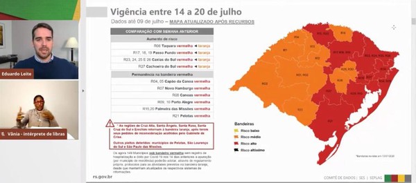Dentro das alterações que o sistema vem sofrendo desde a sua implantação, o governador Eduardo Leite anunciou mais uma, a possibilidade do comercio não essencial, dentro da bandeira vermelha, atender no formado de take away - “pegue e leve”, sem ingresso de clientes dentro do estabelecimento, também o formato drive-thru e o e-commerce. considerando, inclusive uma possível estabilização dos índices no Estado.