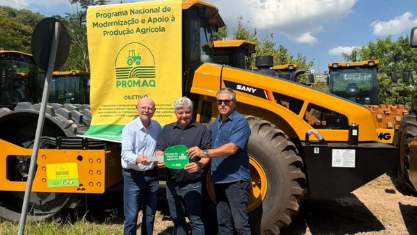Nesta terça-feira, 27 de janeiro, o prefeito de Liberato Salzano, Gilson de Carli (MDB), recebeu oficialmente um novo rolo compactador para o Município. O rolo foi obtido por meio do Programa Nacional de Modernização e Apoio à Produção Agrícola (Promaq), instituído pelo Ministério da Agricultura e Pecuária (Mapa) em 2025 e que visa fortalecer a infraestrutura rural e aumentar a produtividade através da mecanização.