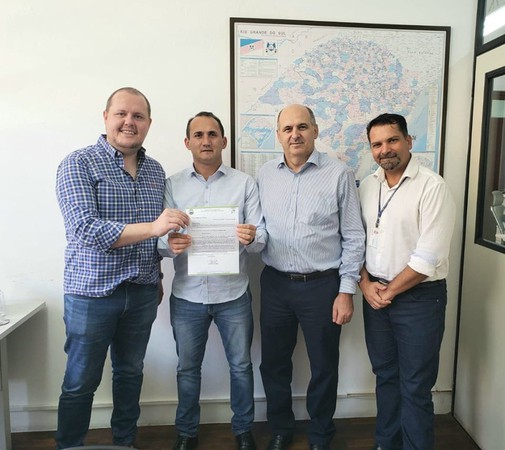 O deputado estadual Dirceu Franciscon (PTB), ao lado do assessor Luciano Oliveira, acompanhou o prefeito de Pinheirinho do Vale, Elton Tatto, em reunião com o secretário de Agricultura, Pecuária e Desenvolvimento Rural do Estado, Covatti Filho, visando a busca de recursos para auxiliar na realização da segunda edição da Fest Março.
