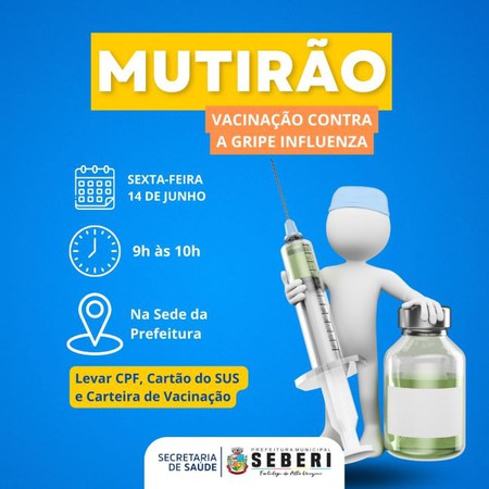 A Administração de Seberi, através da Secretaria da Saúde, promove na próxima sexta-feira, 14 de junho, um mutirão de vacinação contra a gripe Influenza na sede da prefeitura municipal.