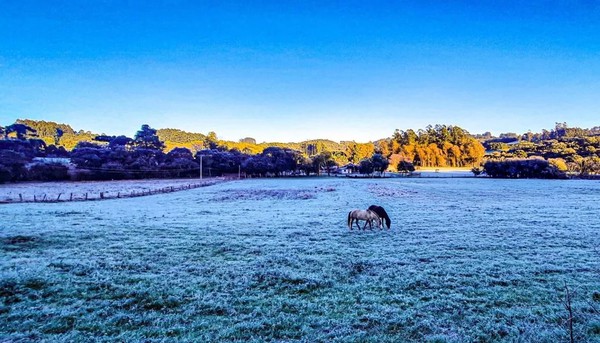 Na sexta-feira, o dia deve ter nebulosidade entre a Serra, a capital e o Litoral Norte com chance de chuva e garoa, principalmente no começo do dia. Alguns pontos podem anotar entre -2ºC e -5ºC com formação de geada, localmente forte.