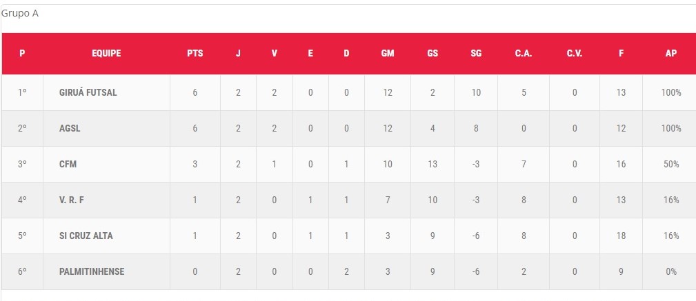 CONFIRA A TABELA DE CLASSIFICAÇÃO DO GRUPO A