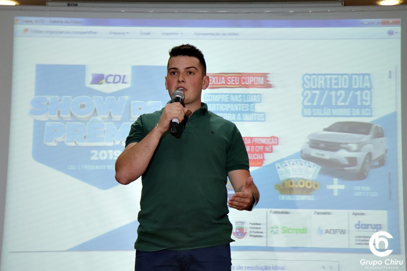 Um Fiat/Mobi zero km, além de mais de R$ 10 mil em vales-compras serão os prêmios da 17ª campanha Show de Prêmios da Câmara de Dirigentes Lojistas de Frederico Westphalen (CDL-FW). O sorteio será no dia 27 de dezembro e as cartelas já começam a ser distribuídas a partir desta quinta-feira, 10, nas empresas que já aderiram a promoção.