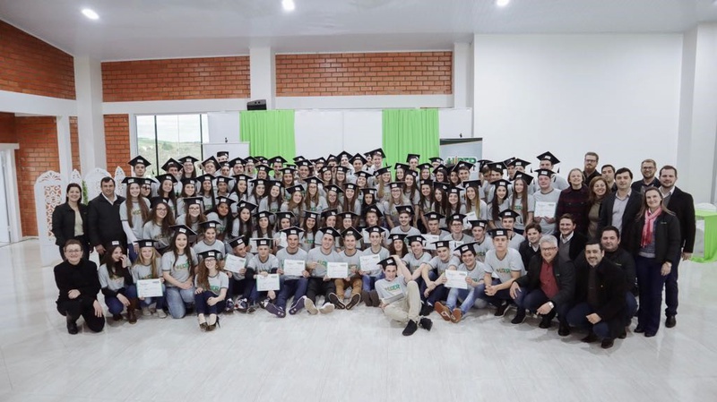 Liderança e empreendedorismo são os norteadores das capacitações promovidas pelo programa Líder Jovem da Sicredi Alto Uruguai RS/SC/MG, em 11 de agosto, formou mais de cem jovens, no Centro de Eventos da Cooperativa em Rodeio Bonito (RS).