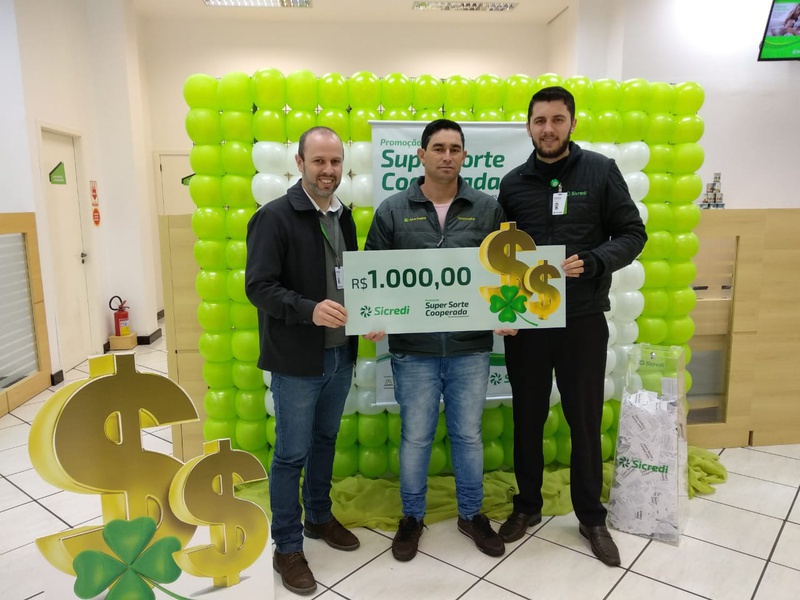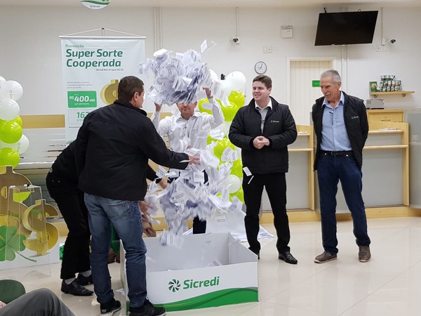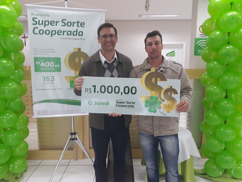 A Sicredi Alto Uruguai RS/SC/MG, instituição financeira cooperativa com mais de 65 mil associados, está promovendo a 12ª edição da Campanha Super Sorte Cooperada. Na quarta-feira, 22 de agosto, aconteceu a primeira apuração com o sorteio de 76 prêmios de R$ 1 mil (líquido) em dinheiro. Neste momento, as agências com menor porte sortearam dois prêmios de R$ 1 mil e as de maior porte, sortearam quatro prêmios de R$ 1 mil, conforme regulamento.
