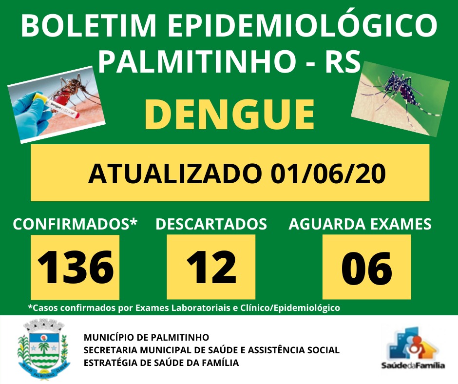 Aumentou para 136 o número de casos confirmados de dengue em Palmitinho. A informação consta em novo Boletim Epidemiológico divulgado pela Secretaria de Saúde do município nesta terça-feira, 2 de junho.